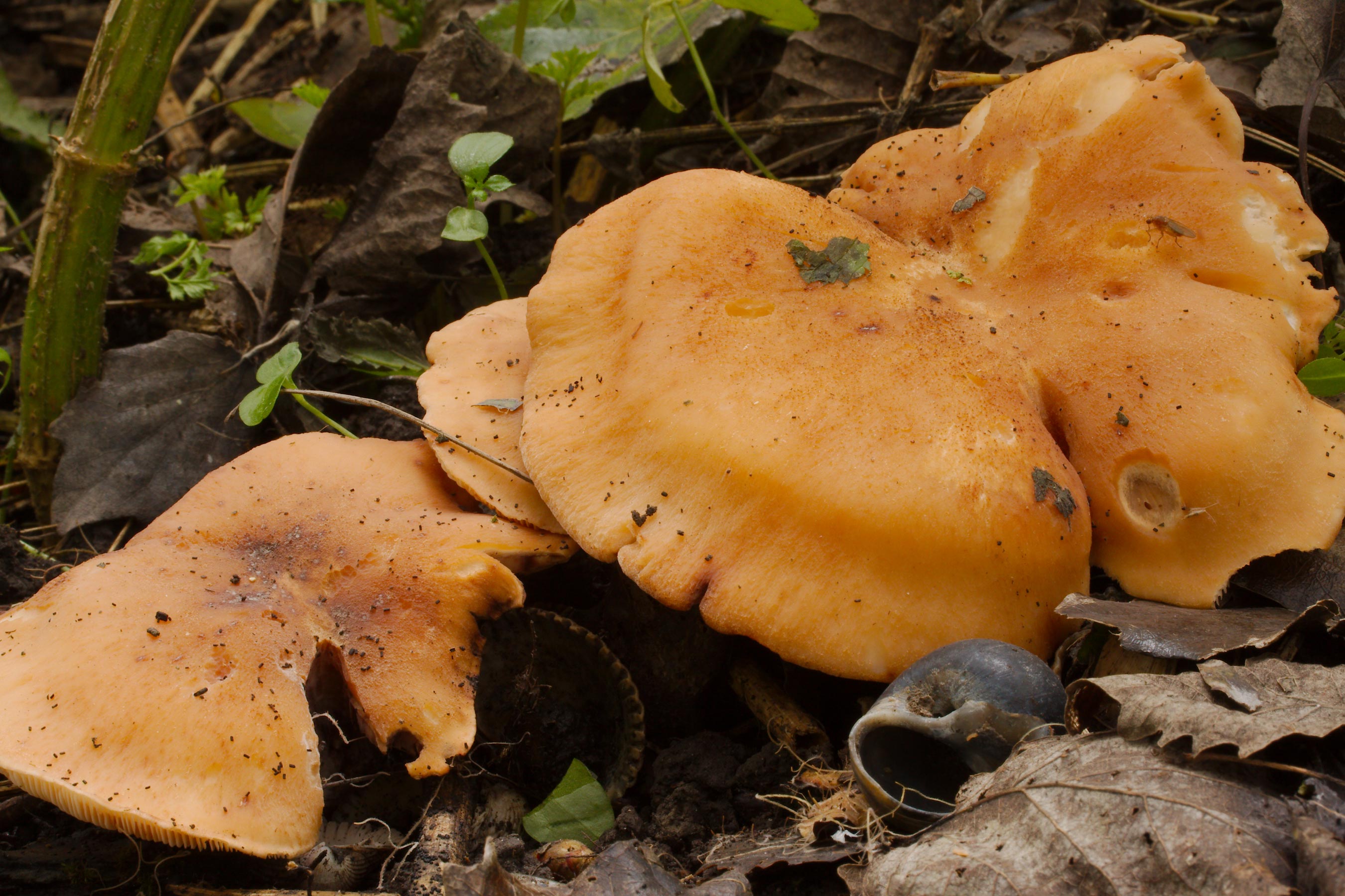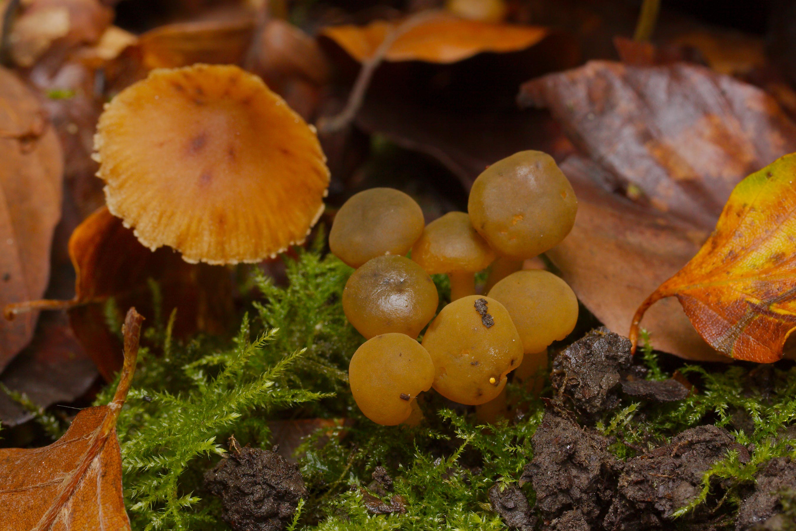 De groene glibberzwam (Leotia lubrica) lijkt sinds kort een soort te zijn die jaarlijks tijdens één van de excursies wordt aangetroffen (foto 4). Dit is ooit anders geweest. Voor de eeuwwisseling was de groene glibberzwam een zeldzame soort. Alleen in 1993 werd deze paddenstoel op een excursie gezien. Na de eeuwwisseling waren de vondsten tijdens excursies wisselend, alleen in 2000, 2004, 2012, 2015 en 2016. Daarna pas weer in november 2023, de excursie in Heeg. In 2024 mochten twee excursies zich verheugen in deze altijd fraaie paddenstoel.