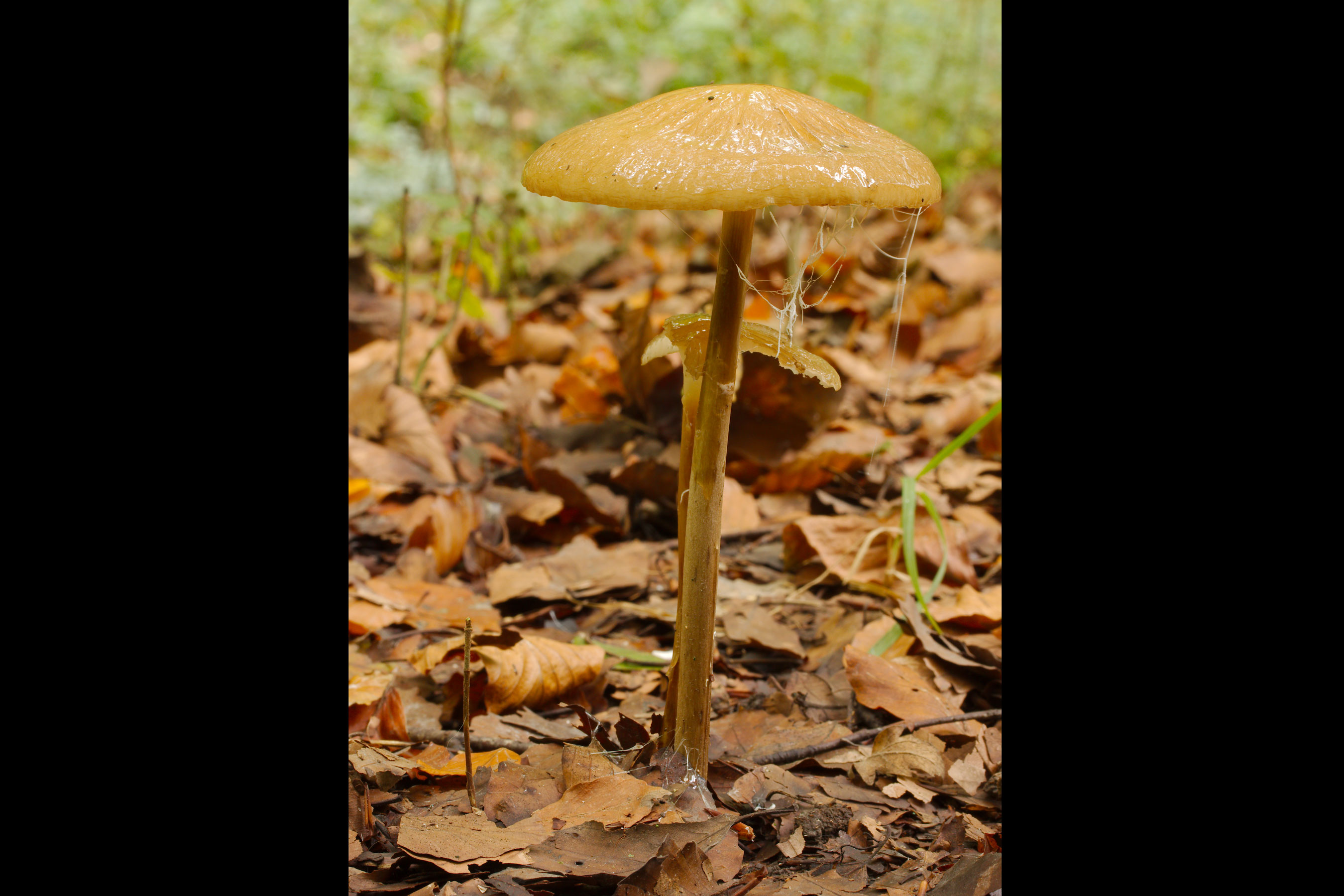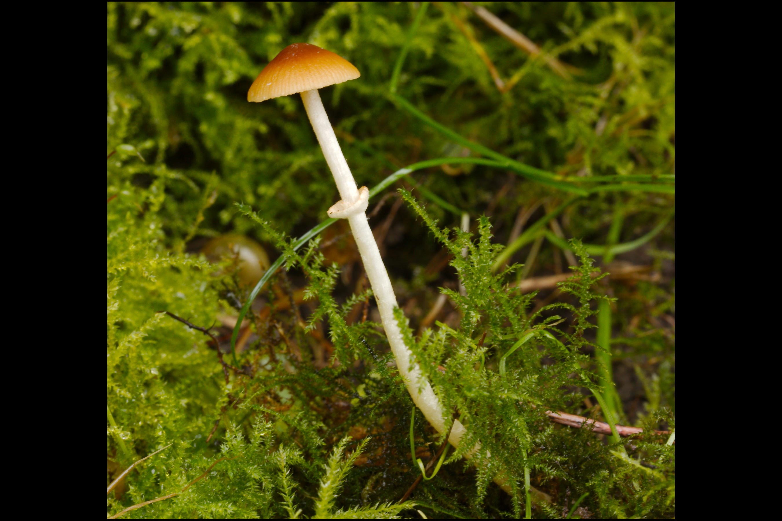 Het bos wordt bovendien nog door een schelpenfietspad doorsneden. Langs dit fietspad vonden we direct een fraai, geringde soort, namelijk het geringd breeksteeltje (Pholiotina arrhenii) (foto 1). Ondermeer deze ring onderscheidt het geslacht Pholiotina van de andere groep van breeksteeltjes, het geslacht Conocybe. Om breeksteeltjes op naam te brengen is de microscoop nodig. In Friesland is het gering breeksteeltje een vrij zeldzame soort, met tot nu toe slechts een twintigtal vindplaatsen.