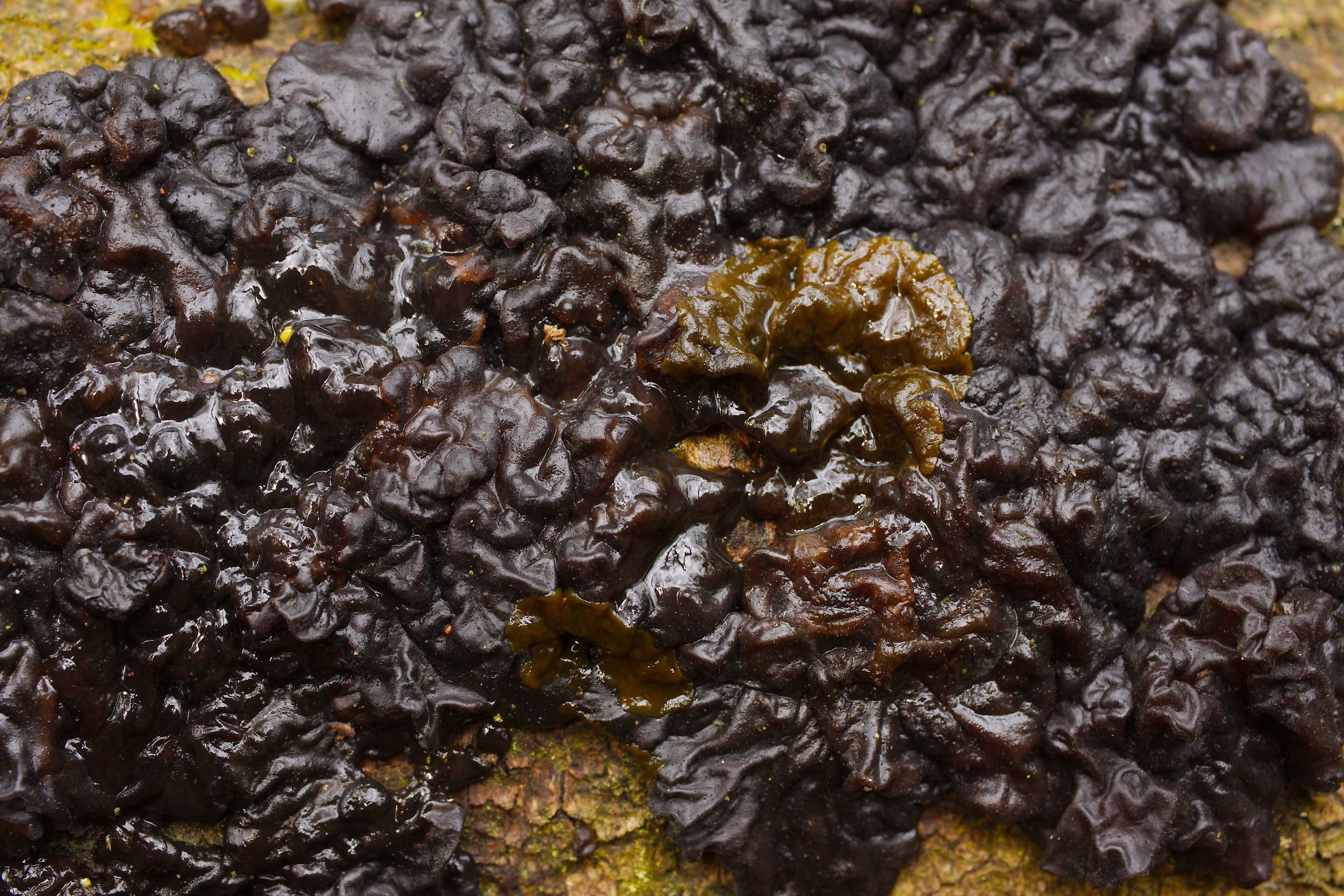 De zwarte trilzwam (Exidia plana) daarentegen kan uitdijen tot plakkaten die stammen of grote takken over een grote lengte kunnen overdekken. De zwarte trilzwam komt vaak op eik voor, maar groeit ook regelmatig op andere bomen, zoals op gevelde berken (foto 3).