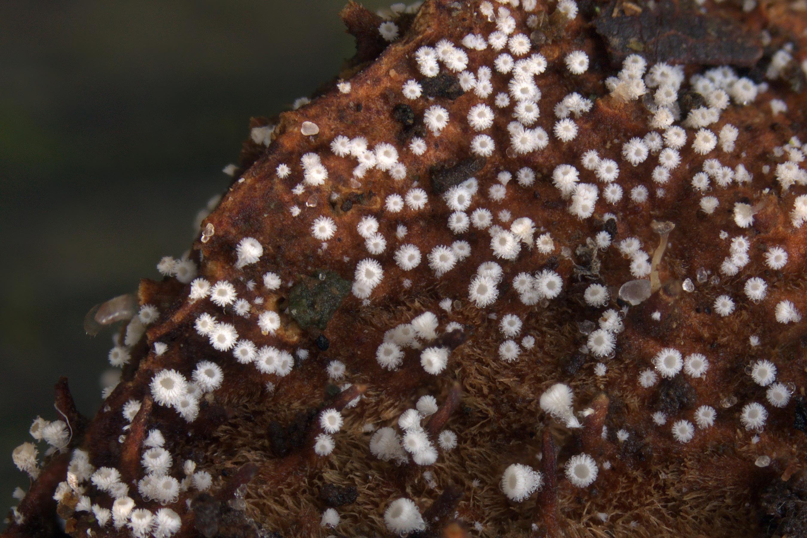 De excursie leverde ook een tweetal nieuwe soorten voor Friesland op: het dennenharsviltkelkje (Lachnellula calycina) en de bolsporige boomkorst (Radulomyces rickii).